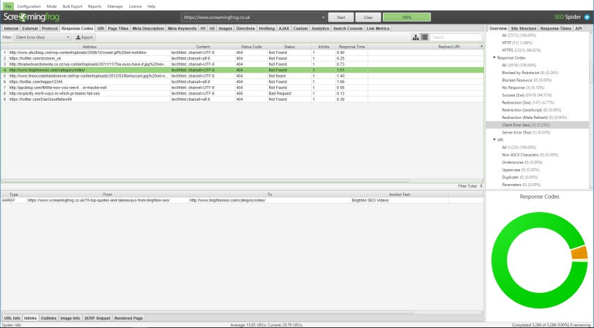 Иногда ссылки ломаются, или вы случайно дублируете страницы, и все это не идеально в книгах Google (или ваших посетителей). К счастью, вы можете провести бесплатный аудит сайта с помощью Screaming Frog (до 500 URL в бесплатной версии).
